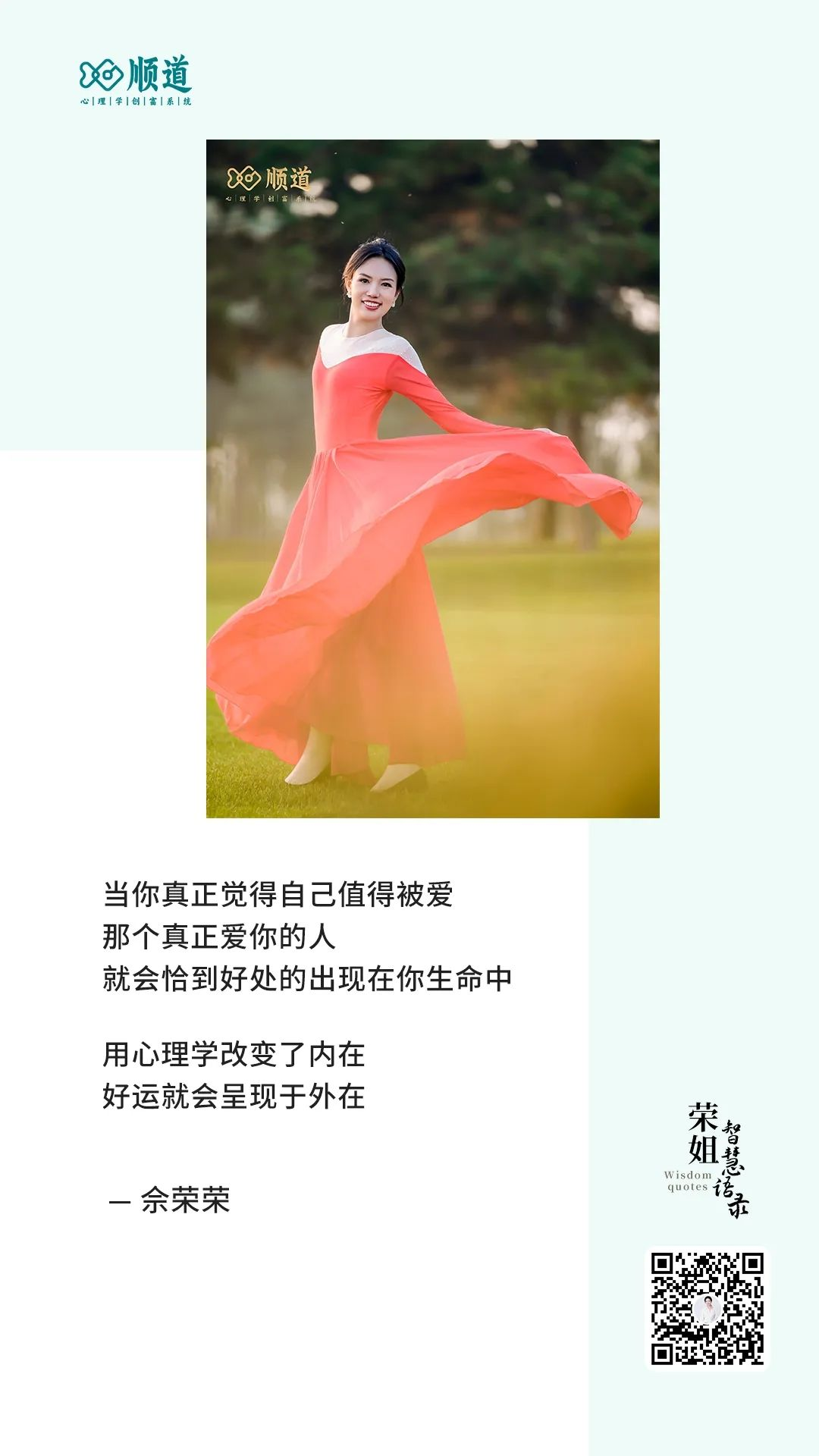 当你真正觉得自己值得被爱那个真正爱你的人就会恰到好处的出现在你生命中用心理学改变了内在好运就会呈现于外在——佘荣荣